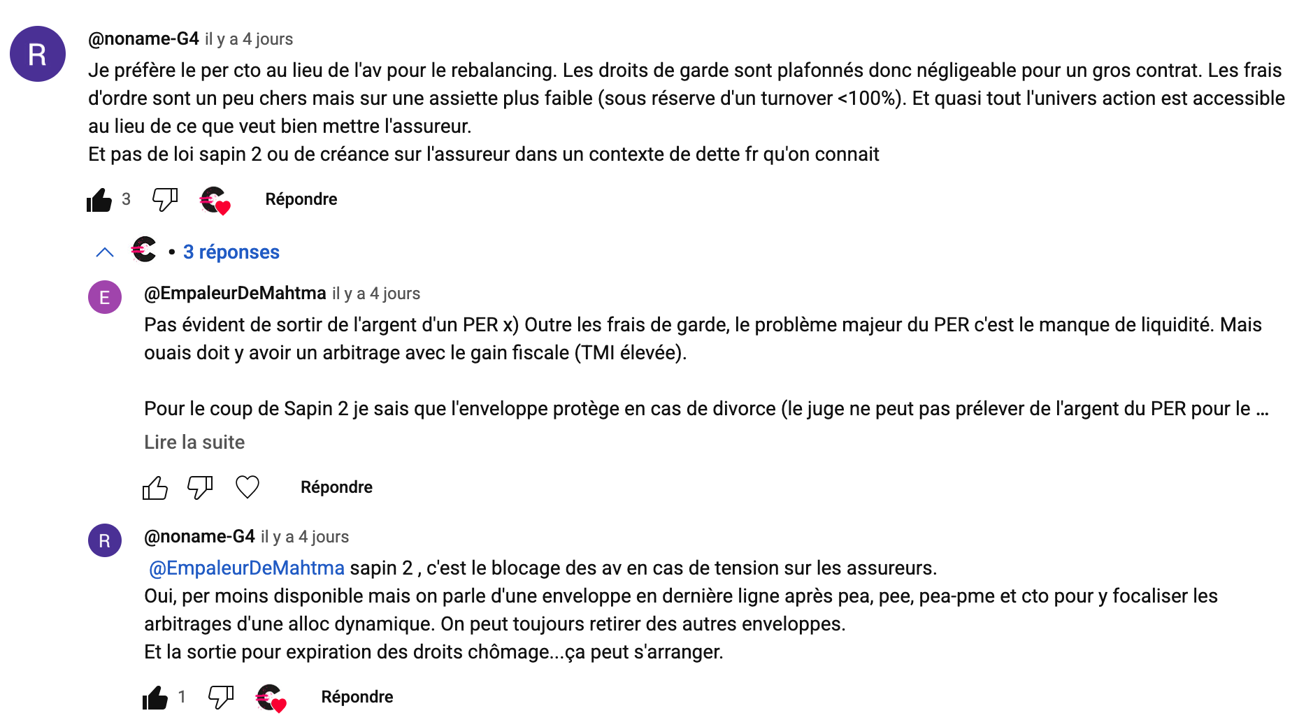 Pour le moment, je n’ai pas d’avis étayé. Le principal souci que je vois est la liquidité, modérée par les clauses de déblocage. C’est un calcul d’Utilité assez tordu : quelle est la probabilité qu’une allocation en PER nous contraigne sur des projets importants pendant notre vie active ? Cela est-il compensé par de légers gains à la retraite ?